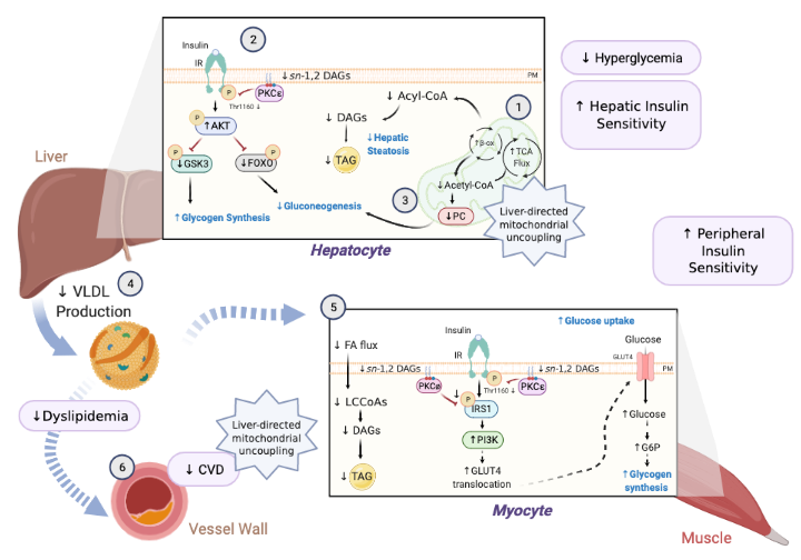 Figure 1: Therapeutic efficacy of liver-directed mitochondrial uncoupling agents (CRMP) for the treatment of cardiometabolic disorders.